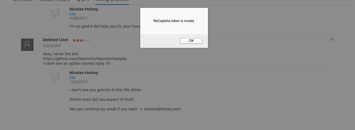 I can't report a comment in the marketplace because there's an issue with ReCaptcha