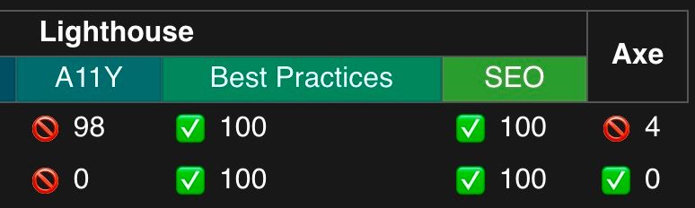At least my Lighthouse Accessibility score is back to a decent value… but my Axe score is now bad… 🤷♂️😅