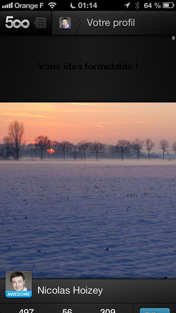 iPhone app, it says “You are wonderful” («Vous êtes formidable» in french), nice