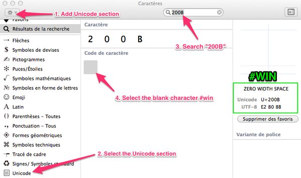 an easy way to find the ZERO WIDTH SPACE on #macosx