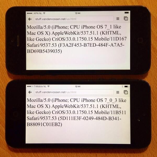 : For some reason, Chrome on iOS now adds what looks like a per-device GUID to its User-Agent string.