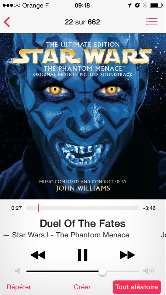 Je fait un petit Angry Birds Star Wars quand soudain ma playlist aléatoire se met au diapason… \o/ #win