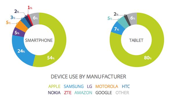 : Web browsing by device and manufacturer. Apple still leads in both phone and tablet.