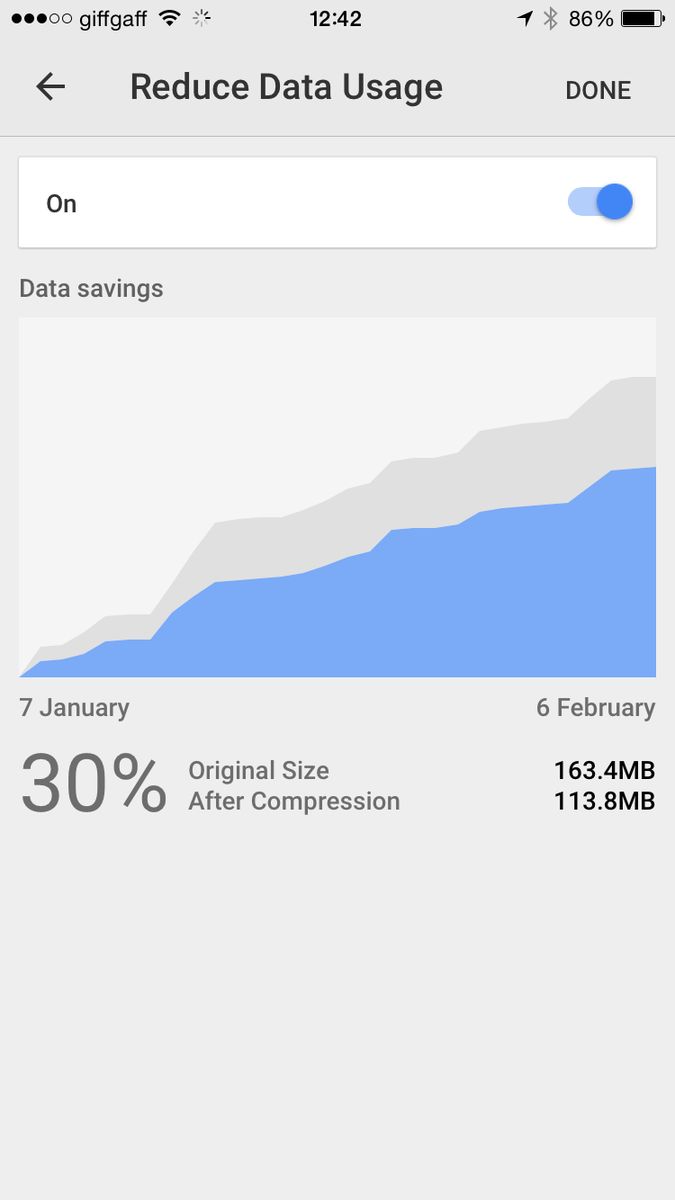 in Chrome iOS: Menu > Settings > Bandwidth > Reduce data usage —