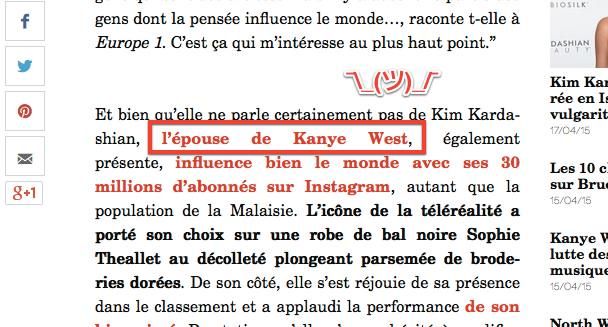 ah ah, ils qualifient Kim comme « l’épouse de Kanye ». Elle a besoin de ça pour être connue, c’est clair…