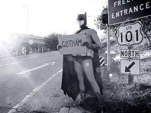 : Il n'y a que Batman pour faire du stop avec une pancarte "J'ai du jambon"