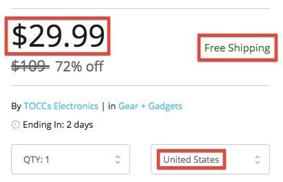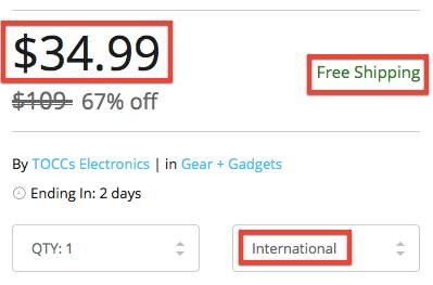 Un produit qui change de prix selon la destination, les frais de port restant gratuits…