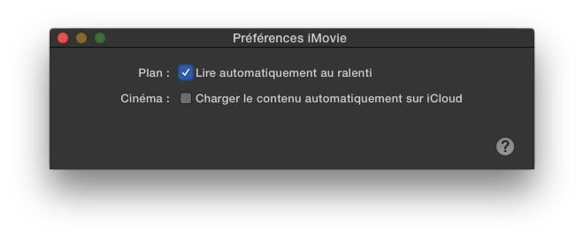 malheureusement, iMovie 10 s’est bien appauvri, voici la fenêtre de préférences… 😕