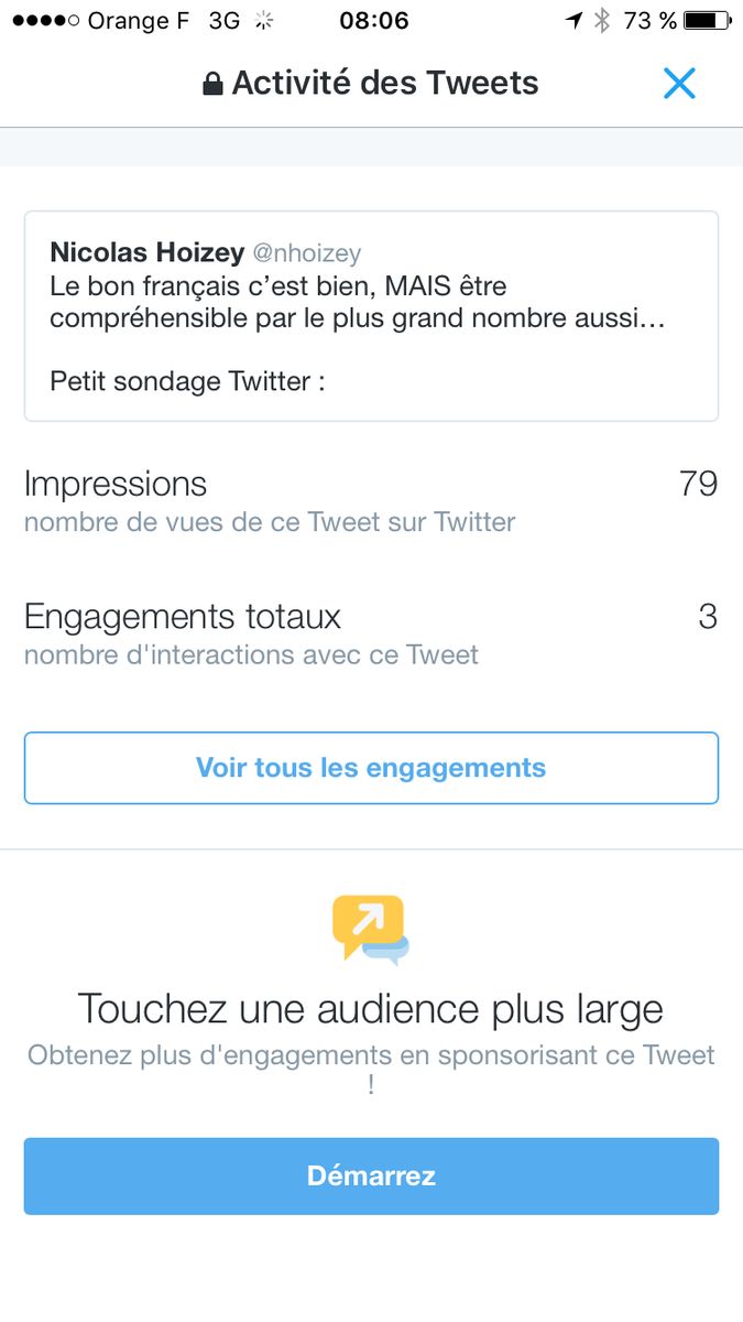 Dans la vue « activité des tweets »,