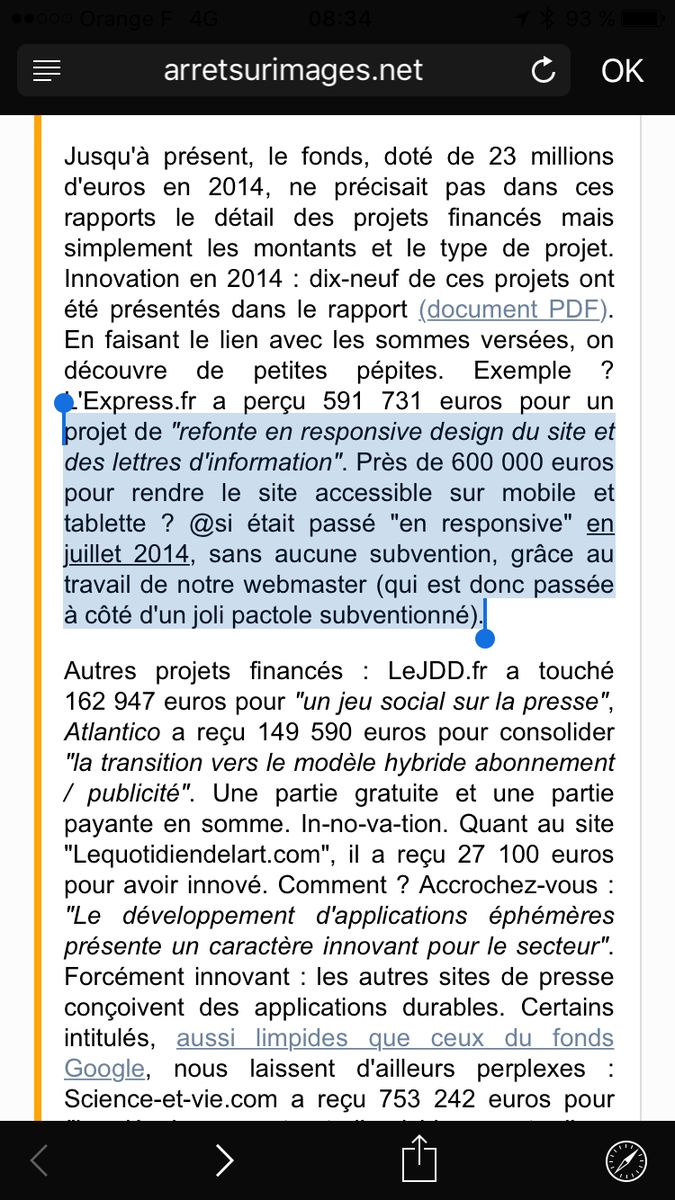 Ok, donc @arretsurimages critique les subventions obtenues par @LEXPRESS pour sa refonte responsive…