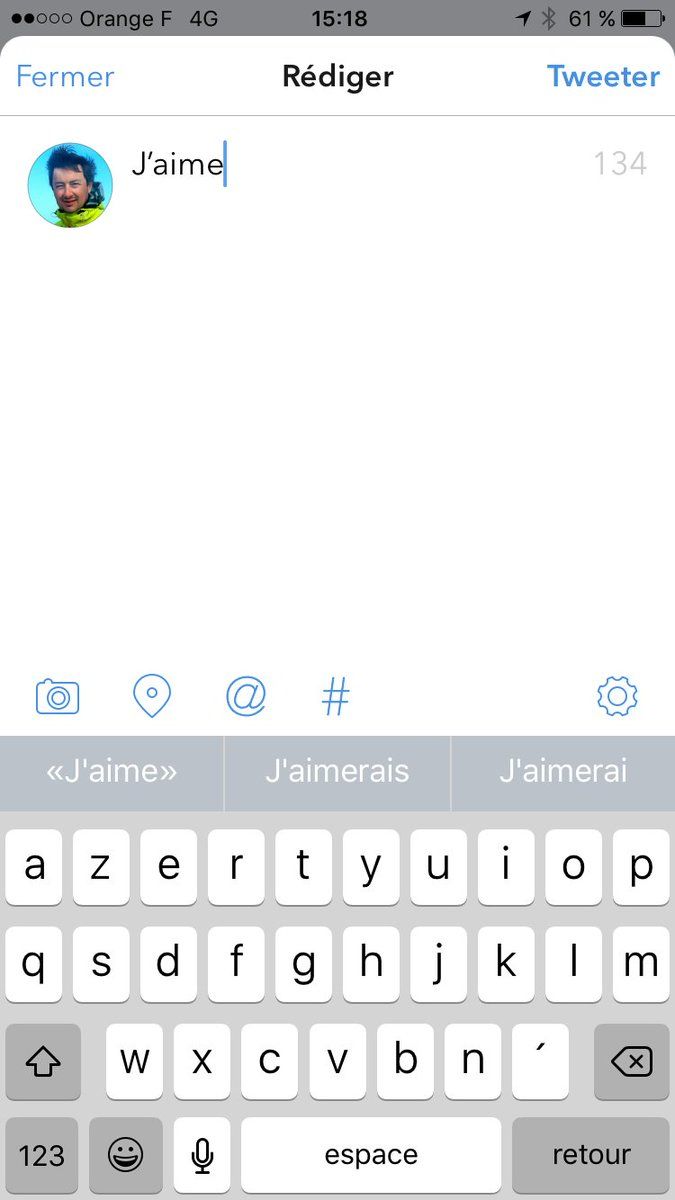 if I tap on “J’aimerais” here, I get only a space after “J’aime”. Suggestions never work if there’s a ´