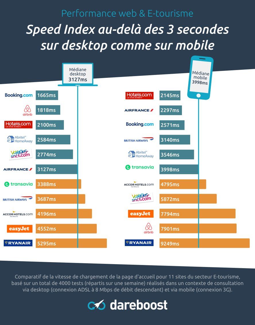 : La #webperf comparée de 11 sites du secteur e-tourisme :